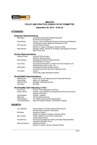 Policy and Practice Consultative Committee Meeting Minutes September 20, 2012