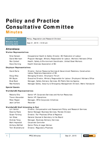 Policy and Practice Consultative Committee Meeting Minutes September 21, 2015