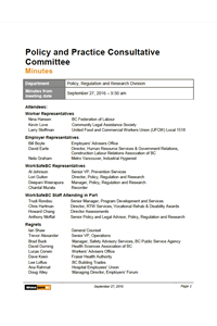 Policy and Practice Consultative Committee Meeting Minutes September 27, 2016