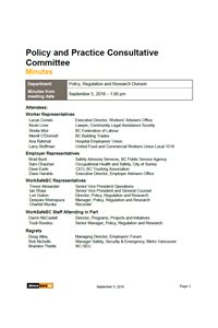 Policy and Practice Consultative Committee Meeting Minutes September 5, 2018
