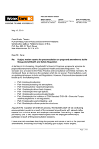 Pre-Consultation on 2011 OHS Regulation Amendments