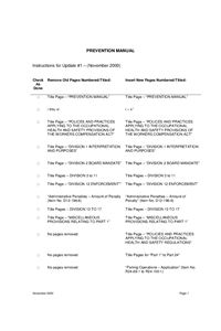 Update Package 2000-1 – Prevention Manual – November, 2000
