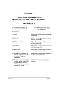 Appendix 2 is the occupational diseases listed in Schedule 1 (policy in Item C4-25.10, Section C).