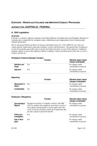 This is the informational summary prepared on Australia — Federal's legislation, regulation, and non-regulatory practices regarding workplace violence.