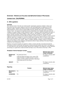 This is the informational summary prepared on California's legislation, regulation, and non-regulatory practices regarding workplace violence.