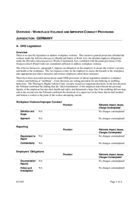 This is the informational summary prepared on Germany’s legislation, regulation, and non-regulatory practices regarding workplace violence.