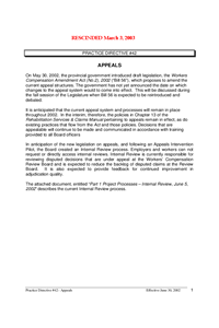 Rescinded Compensation Practice Directive: #42 - Appeals