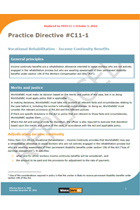 Rescinded Compensation Practice Directive: #C11-1 — Vocational Rehabilitation — Income Continuity Benefits