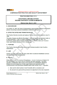 Rescinded Compensation Practice Directive: #C11-1 - Vocational Rehabilitation Income Continuity (Code R) Benfits