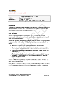 Rescinded Compensation Practice Directive: #C16-3 - Out-of-Province Injuries