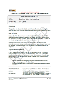 Rescinded Compensation Practice Directive: #C17-2 - Experience Rating Cost Exclusions