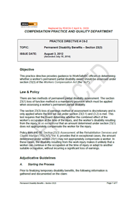 Rescinded Compensation Practice Directive: #C6-2 - Permanent Disability Benefits – Section 23(3)