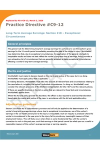 Rescinded Compensation Practice Directive: #C9-12 — Long-Term Average Earnings: Section 218 – Exceptional Circumstances