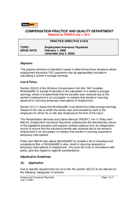 Rescinded Compensation Practice Directive: #C9-8 - Employment Insurance Payments
