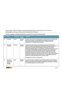 December 2022 Public Hearing Submission Summary for Part 6, Hazardous Drugs (formerly Cytotoxic Drugs)