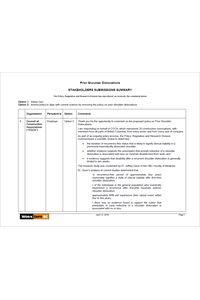 Prior Shoulder Dislocations - Stakeholders Submissions Summary