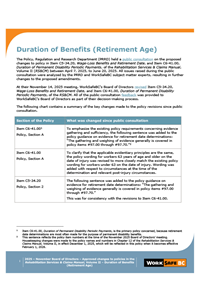 Summary of Key Changes to Policy Amendments — Duration of Benefits (Retirement Age)