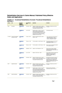 Rehabilitation Services and Claims Manual, Published Policy Effective Dates and Application — Chapter 11