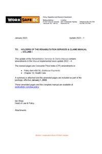 Update Package 2023-1 – Rehabilitation Services & Claims Manual, Volume I – January 1, 2023