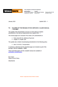 Update Package 2025-1 – Rehabilitation Services & Claims Manual, Volume I – January 1, 2025
