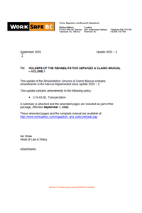 Update Package 2022-3 – Rehabilitation Services & Claims Manual, Volume I – September 2022