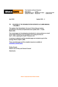 This update of the Rehabilitation Services & Claims Manual contains amendments in the Manual implemented since update 2026 — 3.