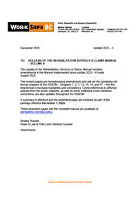 Update Package 2025-5 – Rehabilitation Services & Claims Manual, Volume II – December 2025