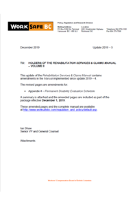Update Package 2019-5 - Rehabilitation Services & Claims Manual, Volume II - December 2019