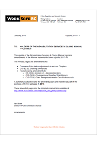 Update Package 2018-1 - Rehabilitation Services & Claims Manual, Volume II - January 2018
