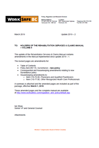 Update Package 2019-2 - Rehabilitation Services & Claims Manual, Volume II - March 2019
