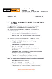 Update Package 2020-6 - Rehabilitation Services & Claims Manual, Volume II - September 2020