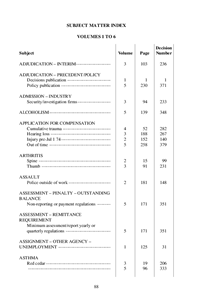 Subject Matter Index, Volumes 1 to 6 of the Workers' Compensation Reporter