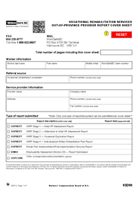 Vocational Rehabilitation Services Out-of-Province Provider Report Cover Sheet (Form 65D99)