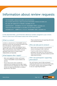 Whether an employer or worker, if you have questions or need help at any time during the review or appeal process, you can also get advice free of charge from the following independent organizations: