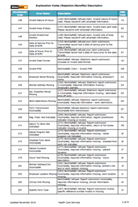 - Explanation of Benefits codes for the items rejected or not paid in full